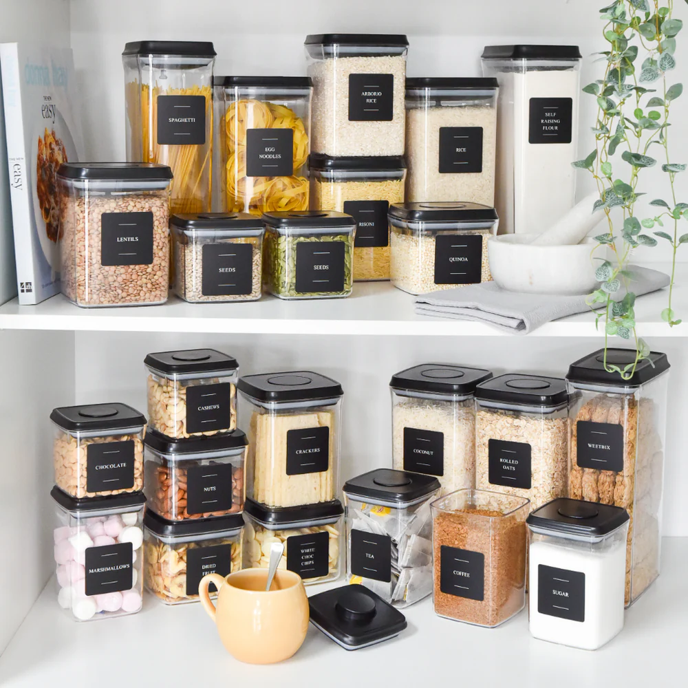 Most sets include chalkboard labels and reusable markers so you can easily label everything.