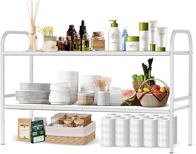 Expandable organizers adjust around plumbing and create two-tier storage instantly.